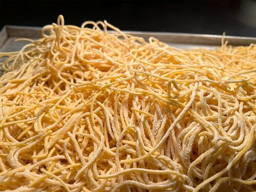 スパゲッティ・アッラ・キタッラはアブルツッオ州で作られる生パスタです。 アブルツッオ州に実家がある友人がもってきてくれました。 スパゲッティ・アッラ・キタッラ。 このパスタは、木枠に弦を張ったキタッラという器具で作ります。弦の上に少し厚めに伸…