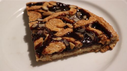 友人からクロスタータをいただきました。 クロスタータは、パスタ・フローラというタルト生地をのばして、型に敷いてジャムやフルーツ等を詰めて、細く切った生地を格子状にしてのせて焼いた、イタリアの伝統的なお菓子です。 ジャムは、プルーン、カカオと…